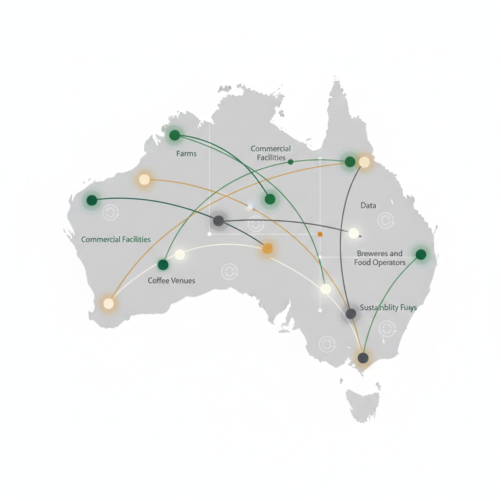 A governance‑safe infrastructure pilot connecting breweries, venues, food operators, coffee groups, farms, and commercial facilities through engineered waste‑to‑fuel pathways and sovereign‑grade software.